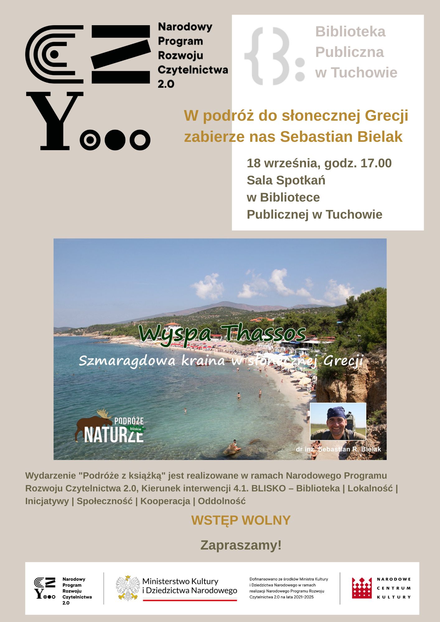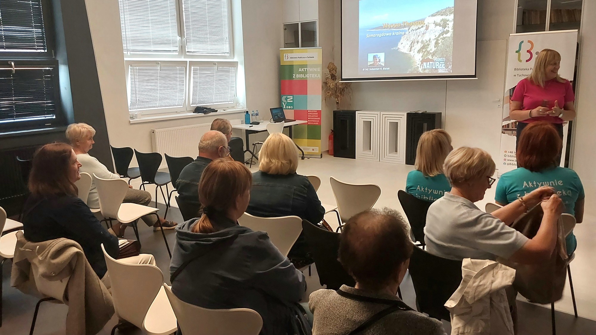 W dniu 18 września 2025 r., w sali audiowizualnej Biblioteki Publicznej w Tuchowie, miały miejsce dwie prelekcje poświęcone ciekawym zakątkom świata. W pierwszym wydarzeniu, zatytułowanym „Ojców i Dolinki Krakowskie. Esencja jurajskich pejzaży”, uczestniczyła młodzież z okolicznej szkoły podstawowej – w ramach poszerzania swojej wiedzy z zakresu geografii i przyrody Polski. Gośćmi drugiego spotkania, zatytułowanego „Wyspa Thassos. Szmaragdowa kraina w słonecznej Grecji”, byli dorośli mieszkańcy Tuchowa. W obydwu wydarzeniach wzięło udział łącznie ok. 50-60 osób (fot. 1-12).